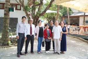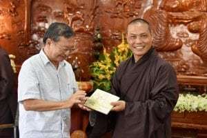 Từ trái: Bs Đỗ Hồng Ngọc, Thầy Trí Chơn, trụ trì, và các vị Tu sĩ Tu viện Khánh An, Quận 12 Tp.HCM, ngày CN 22.7.2018 (ghi chú: ĐHN).