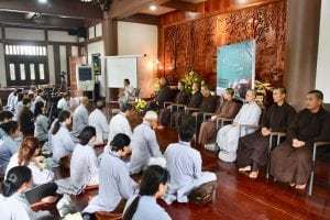 Buổi thuyết trình được khép lại, Thầy Viện chủ đã phát biểu đúc kết. Sau đó là phần tặng sách mà bác sĩ Ngọc là tác giả. Hơn 400 cuốn “Thoảng Hương Sen” được gửi đến hành giả được Công ty Hoa Lan Lâm Thăng phát tâm cúng dường.