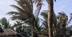 Gió quần quật trên những ngọn dừa. Gió mặn. Gió rải muối trên thảm cỏ trên thềm nhà ẩm ướt không khô.