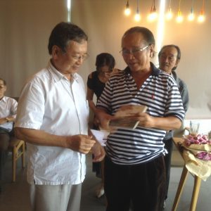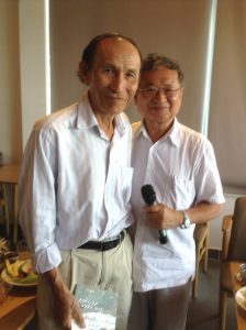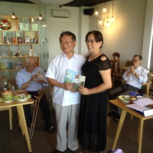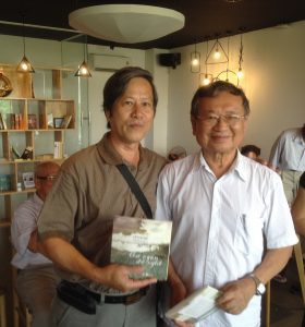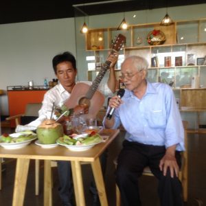 Hai anh em trao đổi thơ cho nhau đó mà! Hàng ngồi bên trái là Nguyễn Ngọc Mỹ, người viết nhạc và bên phải là Trần Kim Trung, nhà thơ.