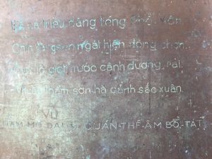 Tôi chần chừ khá lâu trước cái Hồng Chung vĩ đại. Một nhóm học sinh lớp 11 tình cờ đến và các em mở bánh ra ăn, mời tôi thiệt dễ thương. Tôi nói về tiếng chuông và ý nghĩa bài kệ khắc trên hồng chung: