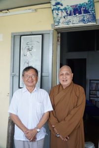 Thầy Phước An vừa ra đón khách. Tôi chắp tay chào thầy và nói xin chụp cái hình kỷ niệm nhé. Thầy kêu khoan khoan chờ tôi vào thay y cho đàng hoàng đã chứ!