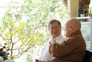 Rồi cùng chuyện vãn bên chén trà xuân, bên cánh mai vàng rực rỡ… Chuyên xưa chuyện nay, chuyện văn chương, chuyện đạo pháp… Dưới chân đồi thăm thẳm kia là thành phố Nha Trang dày kín, xa xa là ngọn núi xanh lơ…