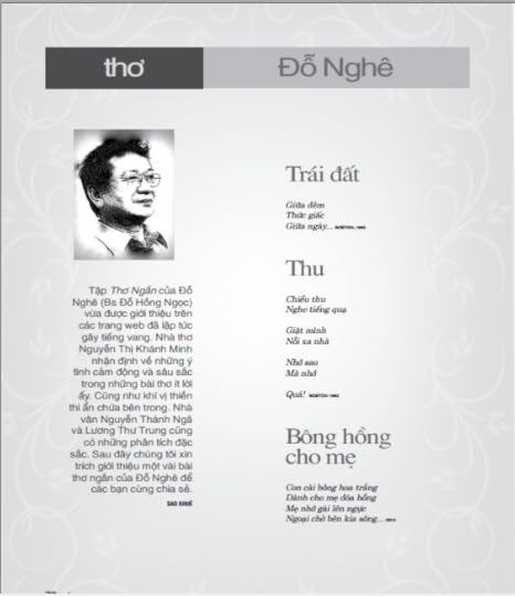 Nguyễn Xuân Thiệp (phovanblog) gởi mình trang thơ trên báo Trẻ Dallas giới thiệu vài bài thơ ngắn trong tập Thơ Ngắn Đỗ Nghê sắp phát hành, xin chia sẻ cùng bạn nơi đây: