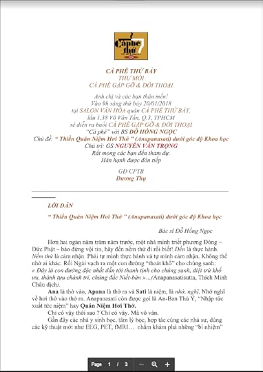 Cafe Thứ Bảy: 20/1/2018 Thiền ”Quán Niệm Hơi Thở”