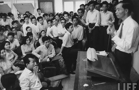 GS Phạm Biểu Tâm nói chuyện với SV tại tòa nhà số 28 đường Testard, sau đổi lại là Trần Quý Cáp (nay là Võ Văn Tần) ẢNH: LIFE