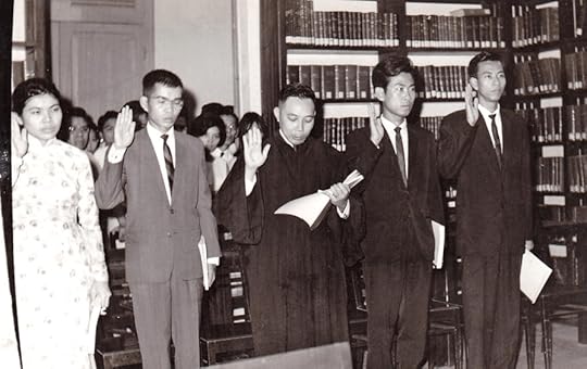 Sau buổi trình luận án của 2 Bs tân khoa: Nguyễn Khắc Minh, Đào Hữu Anh tại Đại học Y Khoa Sài Gòn (1960); với Hội đồng Giám khảo, hàng trước từ trái: Giáo sư Nguyễn Hữu, Giáo sư Phạm Biểu Tâm, Giáo sư Trần Đình Đệ, Giáo sư Trịnh Văn Tuất. (Bs Nguyễn Khắc Minh, Bs Đào Hữu Anh, cả hai đều trở thành giáo sư của trường Y Khoa sau này).