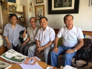Từ trái: Nguên Minh, Lê Ký Thương, Đỗ Nghê, Lữ Kiều và vài trang bản thảo trước mặt…