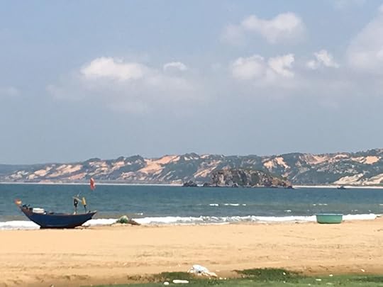 Cho nên bây giờ mình coi tháng Tám là ”tháng sinh nhật” đó vậy. làm gì ư? Đi về Lagi, Phan Thiết, Mũi Né một vòng. ”Đi cho đỡ nhớ” như tựa bài thơ mình viết năm 1973, mơ một chuyến tàu Nam Bắc. Ông Nguyễn Hiến Lê đọc, khen hay, và nói ông cũng mơ như vậy để được uống nước dừa Tam Quan, ăn Cam Xã Đoài, cốm làng Vòng rồi về thăm mùa nước lũ Bạch Hạc quê hương ông dưới chân núi Tản sông Đà… Mình về Lagi thì thăm Đập Đá Dựng như thư trước đã viết cho bạn, rồi đi Mũi Né. Gặp Khoa, MuiNe Bay trò chuyện rất vui. Khoa nói mơ ước làm cái gì đó bảo vệ môi trường thật tốt, nâng cao văn hóa cho vùng biển nghèo, mặc dù resorts mọc lên như nấm, chủ yếu cho du khách và người giàu! Mình có nhắc làng chài Tam Thanh ở Tam Kỳ, Quảng Nam, nhờ các bức bích họa do một nhóm họa sĩ Hàn Quốc vẽ mà nay trông sạch sẻ, dân vui. Khoa nói cũng đã có nghĩ đến và định phát triển ở khu Thạch Long, có nhiều di tích…