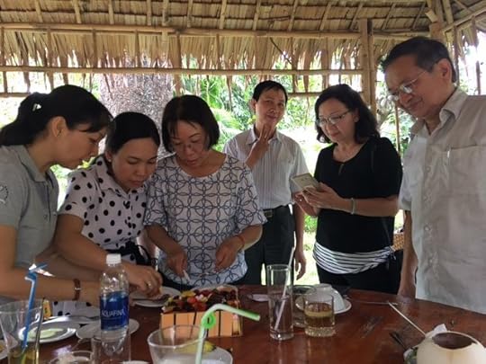 Rồi có một bữa cơm chay với một nửa ”gánh hát”: Lê Ký Thương, Kim Quy, Thu Vàng. Rồi một buổi cafe với Thân Trọng Minh, Huyền Chiêu. Tóm lại, chỉ còn thiếu Tùng Duyên, Nguyệt Mai, Khánh Minh, Ngọc Vân… Dĩ nhiên không thể thiếu ông Thầy Hoàng Quốc Bảo.