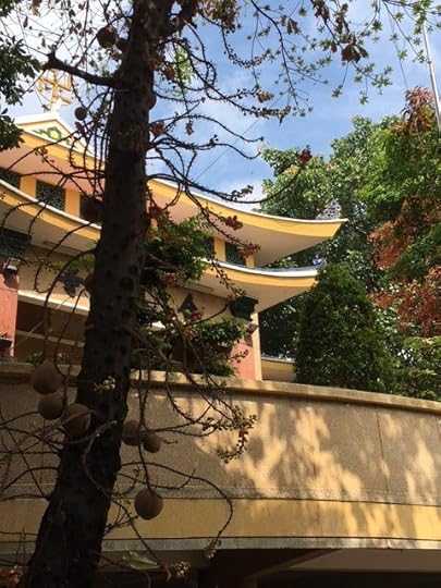 “Ngày xưa” ở đây là chỉ mới cách đây vài tuần lễ thôi, khi sân chùa còn là một khoảng không gian đầy cây xanh bóng mát, chim hót líu lo và sóc nâu chuyền cành, khách thập phương có thể hít thở chút không gian xanh còn sót lại hiếm hoi ở thành phố ồn ào náo nhiệt này. Hôm nay thì cây xanh đã được chặt đốn dọn dẹp trống huơ để xây dựng thêm những công trình mới.