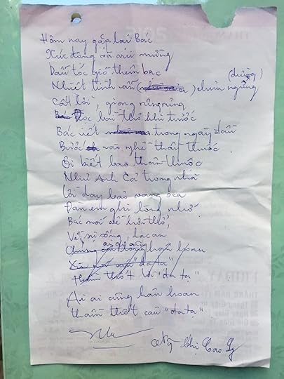 Và thật bất ngờ, có một bài thơ viết ngay tại chỗ của cô giáo Nguyễn Thị Cao Ly tặng ĐHN. Cô nói mới viết nháp, đợi cô viết lại cho đàng hoàng, nhưng thôi, “nháp” hay hơn phải không?