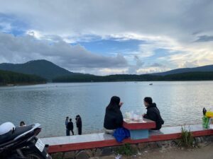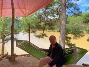 Sau một ngày vất vả, tôi dành một ngày “xả hơi”, về thăm lại Cafe Tùng ngồi cùng các bạn trẻ, đa số nhỏ hơn mình 50 – 60 tuổi xem ra sao… rồi đi thăm Hồ Suối Vàng Dankia, nơi có Làng Cù Lần để nhìn mình cho rõ, rồi vòng quanh Hồ Tuyền Lâm, Trúc Lâm Thiền Viện, qua Nhà thờ Con Gà… nơi đầy trong tranh Đinh Cường và không quên đi qua cầu Hồ Xuân Hương, nơi TCS viết “Có một dòng sông đã qua đời”: Gặp nhau không nói không nụ cười/ chút tình dường như hiu hắt bay… Có lần bàn chân qua phố thấy người/ sóng lao xao bờ tôi…