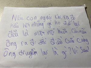 Đâu có! Người chết thì không còn biết gì. Nỗi buồn thường là ở người thân, bạn bè. Ông thì hy vọng điều cuối cùng… để lại là nỗi nhớ của các con về buổi học hôm nay dưới mái chùa này…