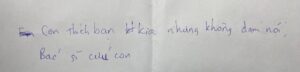 Bác cứu con hổng nổi! Bác cũng vậy thôi. Con biết nhà thơ Đỗ Trung Quân không? Ông có bài thơ viết hồi còn đi học như con bây giờ: “…là bài thơ cứ còn hoài trong cặp/ giữa giờ chơi mang đến lại mang về”…