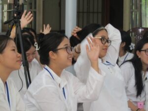 Cuối giờ, một số các em xin chụp chung tấm hình kỷ niệm, một vài em còn tìm đến hỏi riêng…
