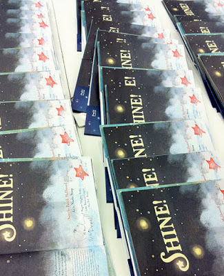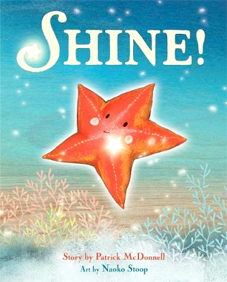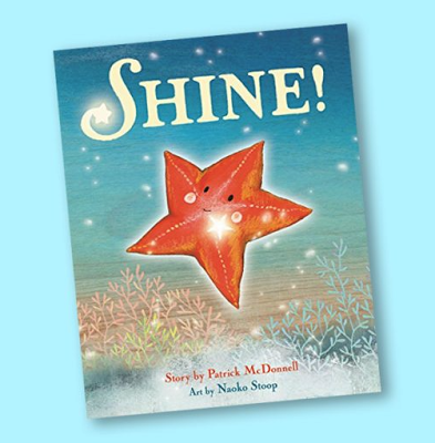 "There is an absolutely gorgeous book coming soon from Patrick McDonnell and Naoko Stoop. Titled Shine!, this vibrant picture book tells the story of a sea star who learns to love herself and her beautiful underwater world.The heartwarming tale, written by Patrick, follows a sea star named Hoshi who longs to live amongst the twinkling stars in the sky. As she imagines how much better life would be up there, she fails to appreciate the beauty of her underwater home. Eventually, Hoshi’s friends help her realize that her shine comes from within.Illustrations are provided by Naoko (creator of Red Knit Cap Girl, a New York Times Best Illustrated Book), who used plywood as the canvas for her work. This unique style — which comes to life through the artist’s use of acrylic, ink, pencil, and pastel and ink — offers the perfect texture and patterns to evoke waves and sea currents.With Patrick’s simple and honest storytelling and Naoko’s brilliant illustrations, Shine!teaches about the many spectacular wonders that can be found inside ourselves."