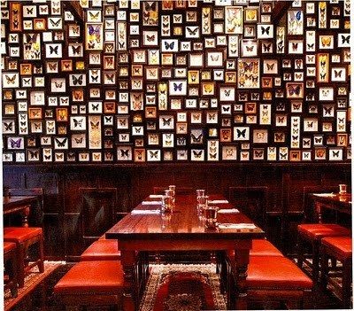 Well, here is a restaurant with a difference. Hundreds of tiny dead butterfly eyes gaze down at diners in this Australian eatery.