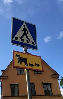 Pelle and his feline friends live in Uppsala, Sweden, where the author also lived for many years of his life. To mark the cat’s popularity, Uppsala added some features related to the children’s literature star around the city, such as a statue, a peep-hole (his residence), and these crossing signs.
