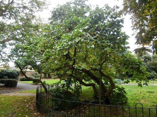 In the middle of the park, fenced off and with wooden supports holding up its aging limbs, sits a mulberry bush that is reckoned to be over 300 years old. How it got there is not entirely clear and there are many varying accounts. In 2018, a stone was placed at the base of the tree to present the most popular—and probably most apocryphal—of all the stories.