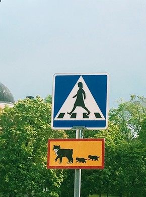 The road signs in front of Carolina Rediviva Library in Uppsala have something unusual: cats. On closer look, you might notice the adult cat leading kittens has no tail. He isn’t just an ordinary bobtail cat. He’s Pelle Svanslös (“Peter No-Tail” in English), a popular character from a children’s book series with the same name.