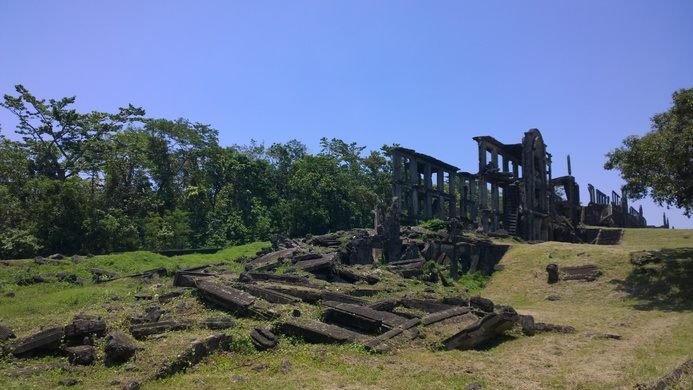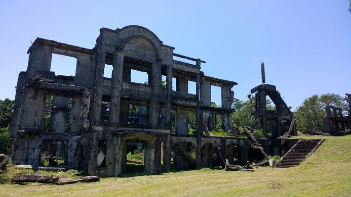 The ruins on a deserted tropical island in the Philippines bear the scars of WWII.
