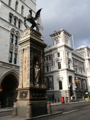 G'day folks,A fierce beast perches atop a pedestal marking where the historic City of London gates once stood. In the Temple Bar area of London, just outside the Royal Courts of Justice, stands a pedestal crowned by a sculpture of a dragon that appears ready to swoop down on passersby.