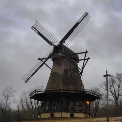 The 68-foot, 5-story mill was originally constructed in the 1850s by German craftsman Louis Blackhaus, about 20 miles from its current location in Geneva, IL for a total of $900. The mill was built from a kit which was shipped to the Midwest and assembled on site. Following several changes of ownership and continued use, the windmill had its sails damaged by a storm in 1912, prompting the owner to look for a buyer.