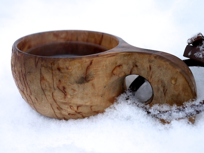 If welcomed into a Sámi home in northern Finland or Sweden, a lucky guest might find their mittened palm wrapped around the smooth, wooden handle of a guksi that’s been filled to the brim with piping hot coffee and a few chunks of cheese. Also called kuksa (Finnish) or kåsa(Swedish), the beautiful wooden mugs are made from the surrounding wilderness and were once an essential tool for living off the local arctic and subarctic environment.