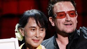 She is frequently called Daw Aung San Suu Kyi; Daw is not part of her name, but an honorific similar to madam for older, revered women, literally meaning “aunt”. Strictly speaking, her given name is equivalent to her full name, but it is acceptable to refer to her as “Ms. Suu Kyi” or Dr. Suu Kyi, since those syllables serve to distinguish her from her father, General Aung San, who is considered to be the father of modern-day Burma. The U2 album All That You Can’t Leave Behind was banned in Burma because one of the songs (Walk On) was written about her struggle and how, even when the government threatened her, she “walked on” the other way.