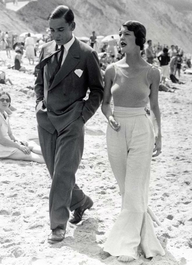 Before the bikini, fashionable ladies donned “beach pyjamas” all along the world’s most stylish coastal towns. The swishy palazzo-like pants and jumpsuit styles shocked the public in the interwar years, while we, on the other side of the second millennium, find some serious beach-going inspiration.