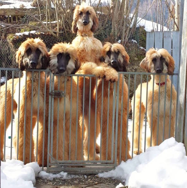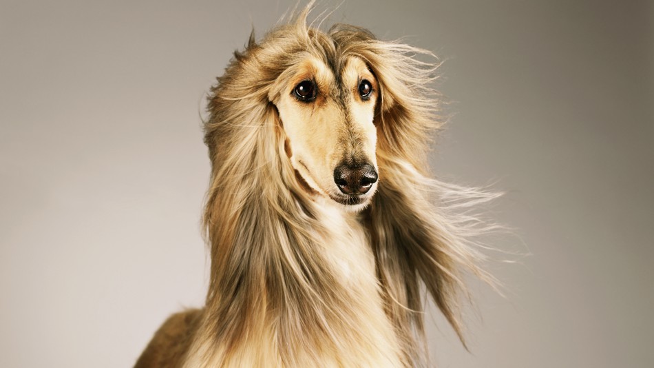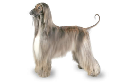 The Afghan Hound is a hound that is distinguished by its thick, fine, silky coat and its tail with a ring curl at the end. The breed is selectively bred for its unique features in the cold mountains of Afghanistan.