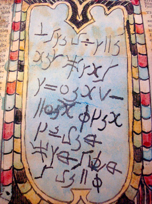 A Mr. Pete Navarro, graphic artist and UFO researcher, heard about the “Flight” exhibition in 1969 and became enthralled. He believed there was a connection between Dellschau’s drawings and mysterious mass of “airship” sightings at the turn of the century across 18 states from California to Indiana. In 1972, he discovered that 8 remaining books of Dellschau were still sitting at the junk shop, unwanted and unclaimed. He bought the lot for $565 and spent the next 15 years obsessively decoding Dellschau’s work.