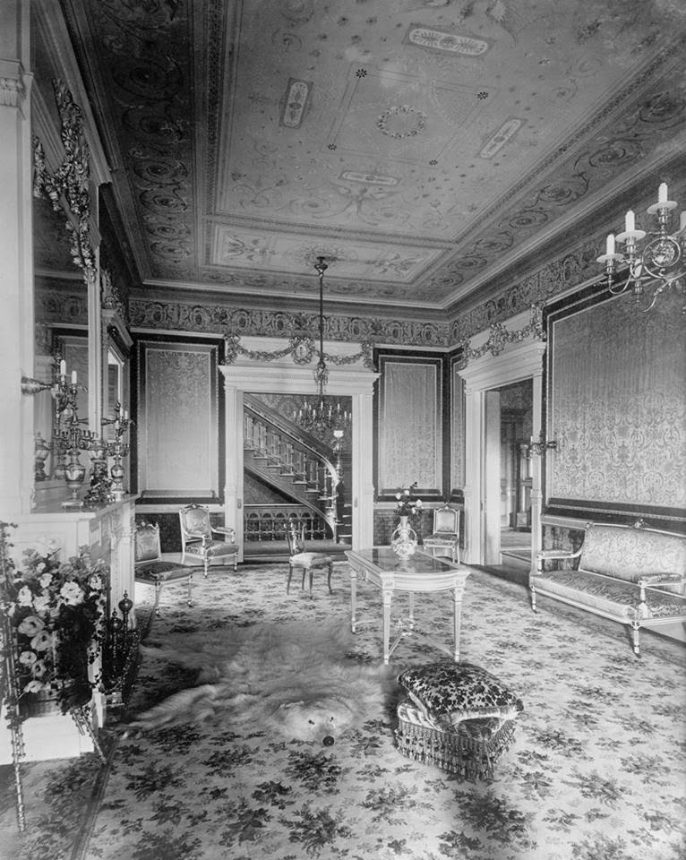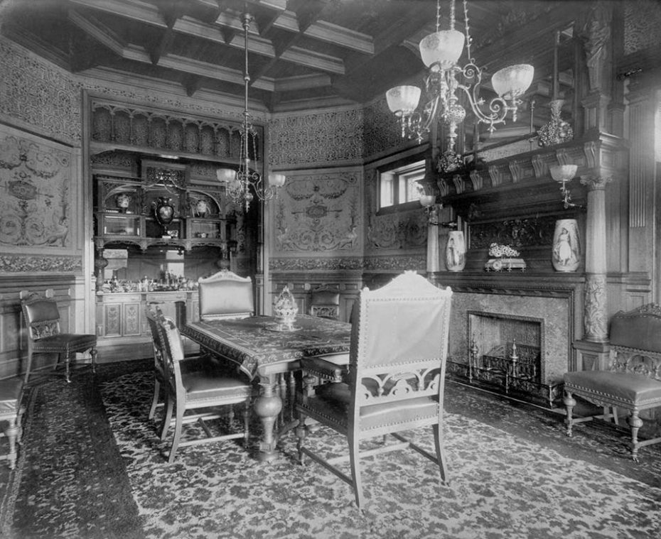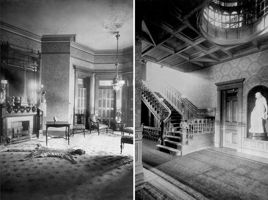 But of all the mansions on High Street, none were as luxurious as the Krueger home. It had forty rooms, the first privately owned elevator in New Jersey. Archival photographs show the mansion’s opulent Louis XIV interior, its stained glass windows, and leather embossed walls glittering with mother-of-pearl wainscoting.