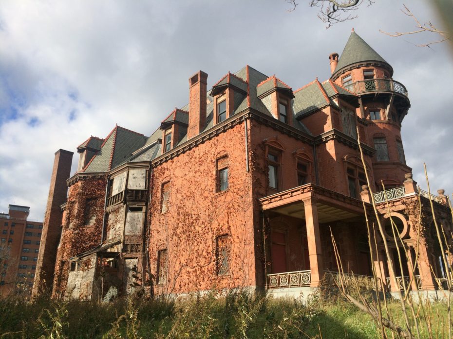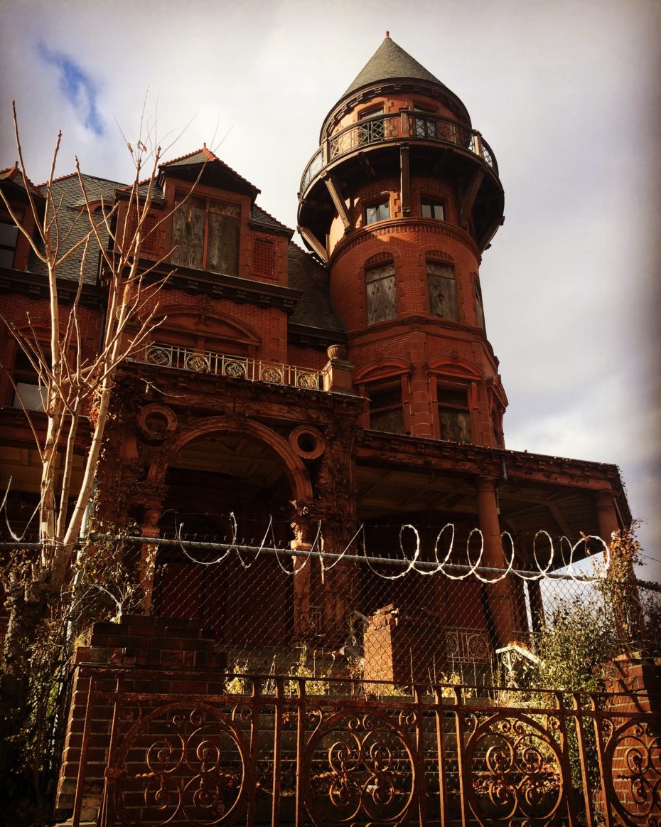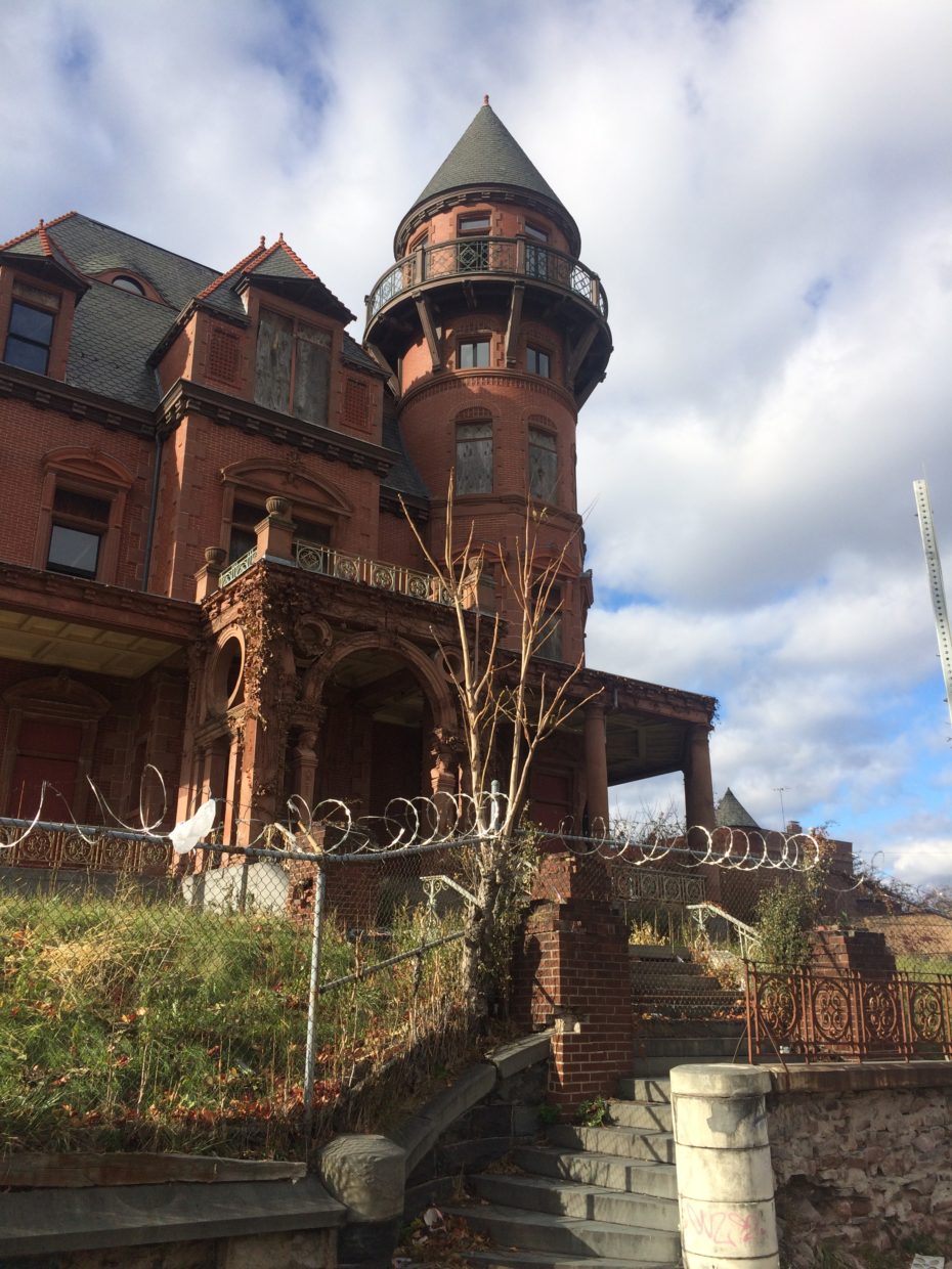 The once ornate staircase that leads to the crumbling mansion, is cracked and falling apart. The old, sculpted gardens have been over run with weeds, surrounded by fences of razor sharp barbed wire. Its once grand spires and turrets overlook a landscape of forbidding housing projects and the desolate lots of one of America’s most notorious and violent cities. We are standing outside the imposing, former home of Gottfried Krueger, once one of the grandest mansions to be found in Newark, New Jersey. But today, it lies abandoned, slowly decaying like a latter day Manderlay.