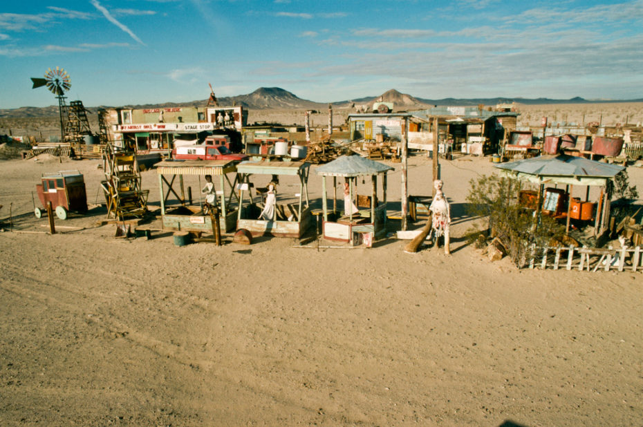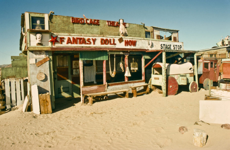 For decades, its human residents were Calvin Black and his wife Ruby, who moved out to the Mojave Desert in 1953, bought some land off of Ghost town rd. (an actual road that still exists), and proclaimed it “Possum Trot.” Over the course of 20-years, the Blacks populated the makeshift village with their handmade dolls and folk-art attractions.