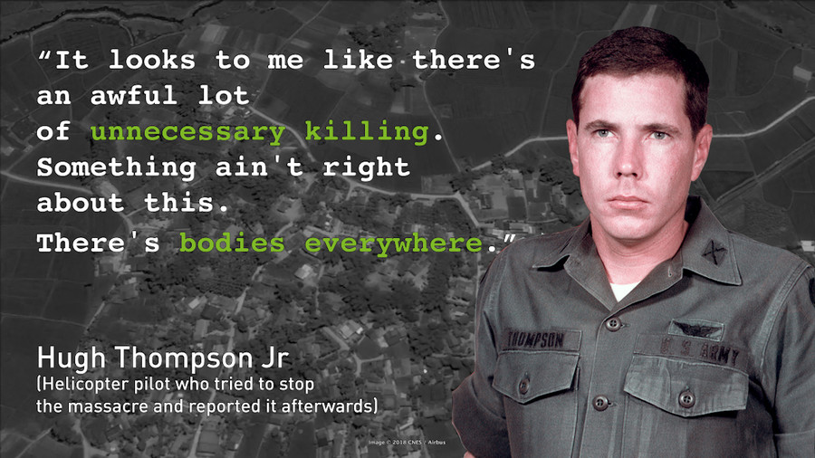 Although the public would not find out what happened for nearly two years, word of the atrocity quickly spread among troops in Vietnam. Some American GIs refused to remain silent about the Army’s cover up of the grisly deaths of unarmed women and children at the hands of U.S. soldiers. Helicopter pilot Hugh Thompson, for example, had tried to stop some of the soldiers from massacring civilians during the assault, and he and two others informed commanders about the war crime within hours, to little avail.