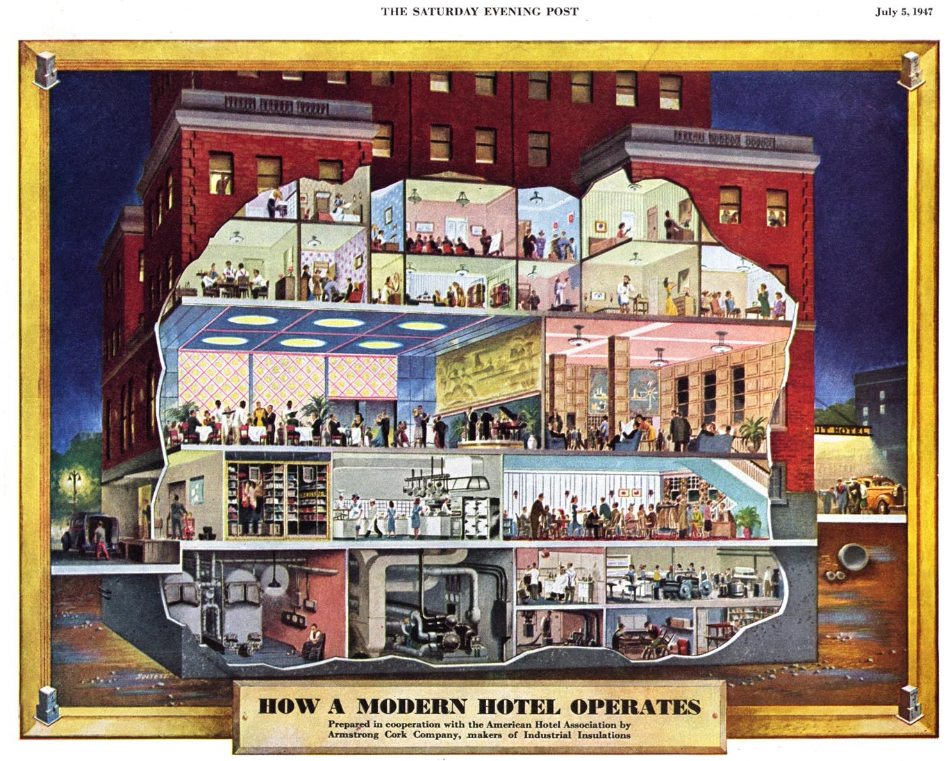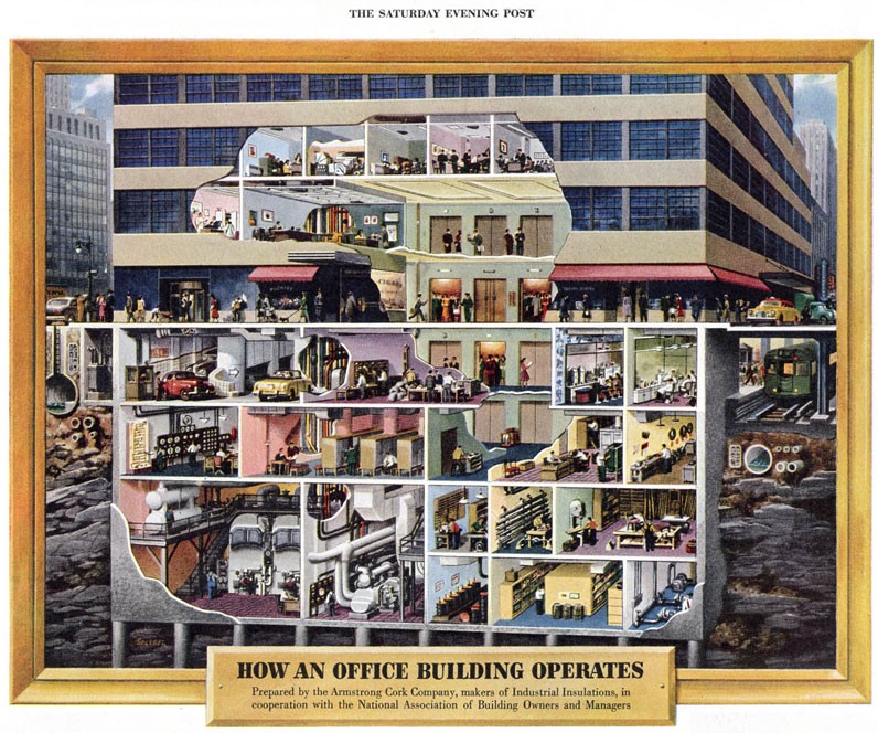 I could say, that as a kid, I used to love looking at cutaway illustrations, but the thing is: I still think they’re just the greatest thing ever. With cutaway art, you get to examine and explore miniature hidden worlds behind-the-scenes and under an x-ray. The best stuff surely came out of the mid twentieth century, a golden age of illustration that generated a voracious public demand for new graphic art in magazines and periodicals. Fast-forward to the age of computer graphics and the cutaway has lost its way; lost its charm. But today, I found some examples of the good stuff to gawk at.
