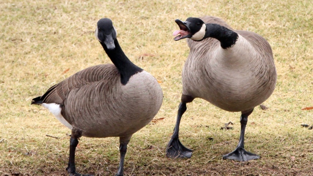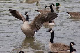 Not only do geese flap their wings to intimidate unwanted company, but they are also known to make a loud hissing noise. If these methods of defence fail, it is not uncommon for a goose to simply charge at the intruder hissing and flapping its wings all at the same time.