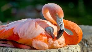 Although flamingos only nest once a year, flamingo colonies are known to breed at any time of the year. A flamingo reaches sexual maturity (which means the flamingo is able to breed) when the flamingo is between 3 and 6 years old. Flamingos build their nests out of mud, stones and feathers and do so about 6 weeks before they lay their eggs. Flamingos tend to lay just one egg that hatches after a 30 day incubation period. Both the mother flamingo and the father flamingo are known to help to raise the flamingo chick.