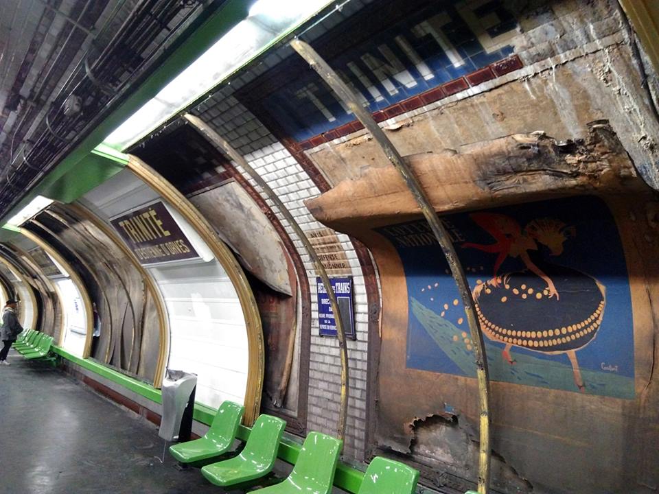 Parisian commuter Yan Covès was quick to snap the uncovered peeling artworks, knowing that within a few days, they would be sealed over once more. Nevertheless, Trinité is one of many stations scheduled to undergo preparations for big renovation works starting in October.