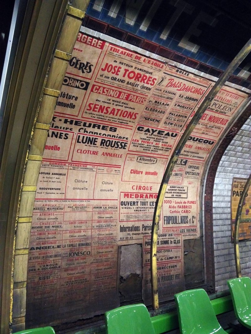 W hen your walls start to look outdated, there’s always the option of just painting over them, which is a little bit like what the Parisian metro has done over the years to update its stations. When the old white tiling of yesteryear needed a revamp, they simply covered them up with more modern materials. A quick and easy fix, it didn’t require even removing the old posters and advertisements pasted along the platforms. So when present day metro workers went in last week to begin preliminary renovations and strip back the walls of the Trinité station in the 9th arrondissement, they uncovered a layer of the city’s history lost in time.