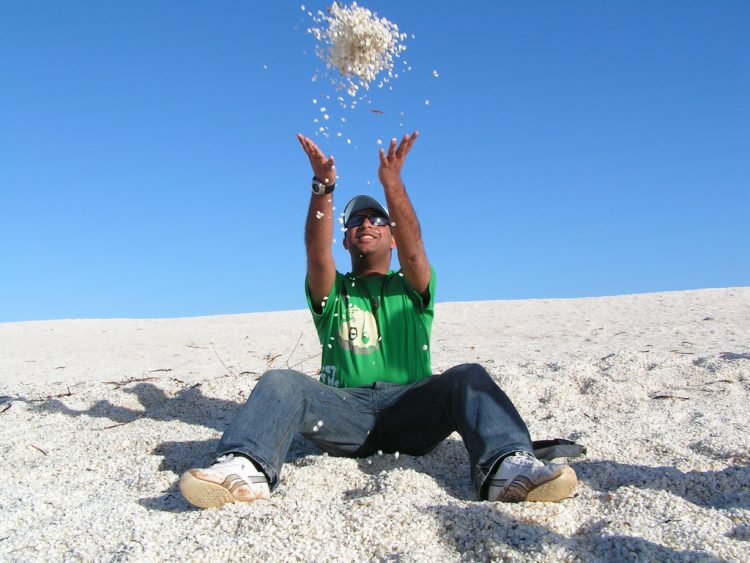 Interestingly, the billions of cockle shells that make up Shell Beach come from a single species of mollusk that thrives in the area due to two important factors. First, there is the location of Shell Beach in the innermost part of the horseshoe-shaped Sharky Bay, with the world’s largest seagrass bank blocking the tide. And then there’s the hypersalinity of the area – double the level of salinity of the Indian Ocean – due to to a climate with less precipitation than evaporation. The high salt concentration keep predators at bay, allowing the Shark Bay cockle (Fragum erugatum) to thrive.