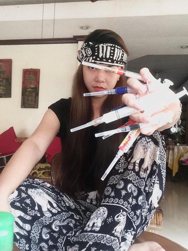 FILIPINO NURSE PAINTS WITH SYRINGES