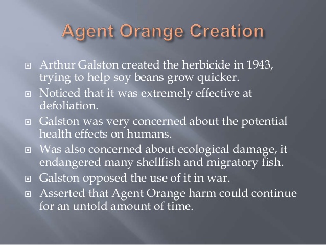 Effects of Agent Orange Because Agent Orange (and other Vietnam-era herbicides) contained dioxin in the form of TCDD, it had immediate and long-term effects.