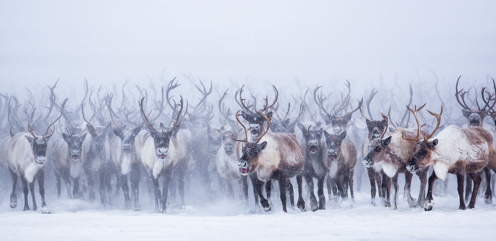 Reindeer thrive in cold climates. They have hooves that allow them to easily walk on snow and ice unlike deer and moose. Their hollow hairs give them extra insulation from the extreme cold and give increased buoyancy allowing them to easily float. A reindeer can swim at speeds up to 10 km/h and migrating herds will not hesitate to swim across a large lake or broad river.Tendons in the Reindeers’ feet slip over the bones producing a clicking sound. During blizzard conditions, detection of the sound is used to keep the herd together. Reindeer have large hooves that are big enough to support the animal’s bulk on snow and to paddle it efficiently through the water. The hoof’s underside is hollowed out like a scoop and used for digging through the snow in search of food. Its sharp edges give the animal good purchase on rocks or ice.Reindeer have no internal body clock. The animals are missing a “circadian clock” that influences processes including the sleep-wake cycle and metabolism. This enables them to better cope with the extreme Arctic seasons of polar day, when the sun stays up all day, and polar night, when it does not rise. · The Grey Wolf is the most effective natural predator of adult reindeer, especially during the winter. Brown Bears and (in the rare cases where they encounter each other) polar bears also prey on reindeer of all ages but are most likely to attack weaker animals such as calves and sick deer. Golden eagles prey on calves and are the most prolific hunter on calving grounds. Wolverine will take newborn calves or birthing cows, as well as (less commonly) infirm adults.
