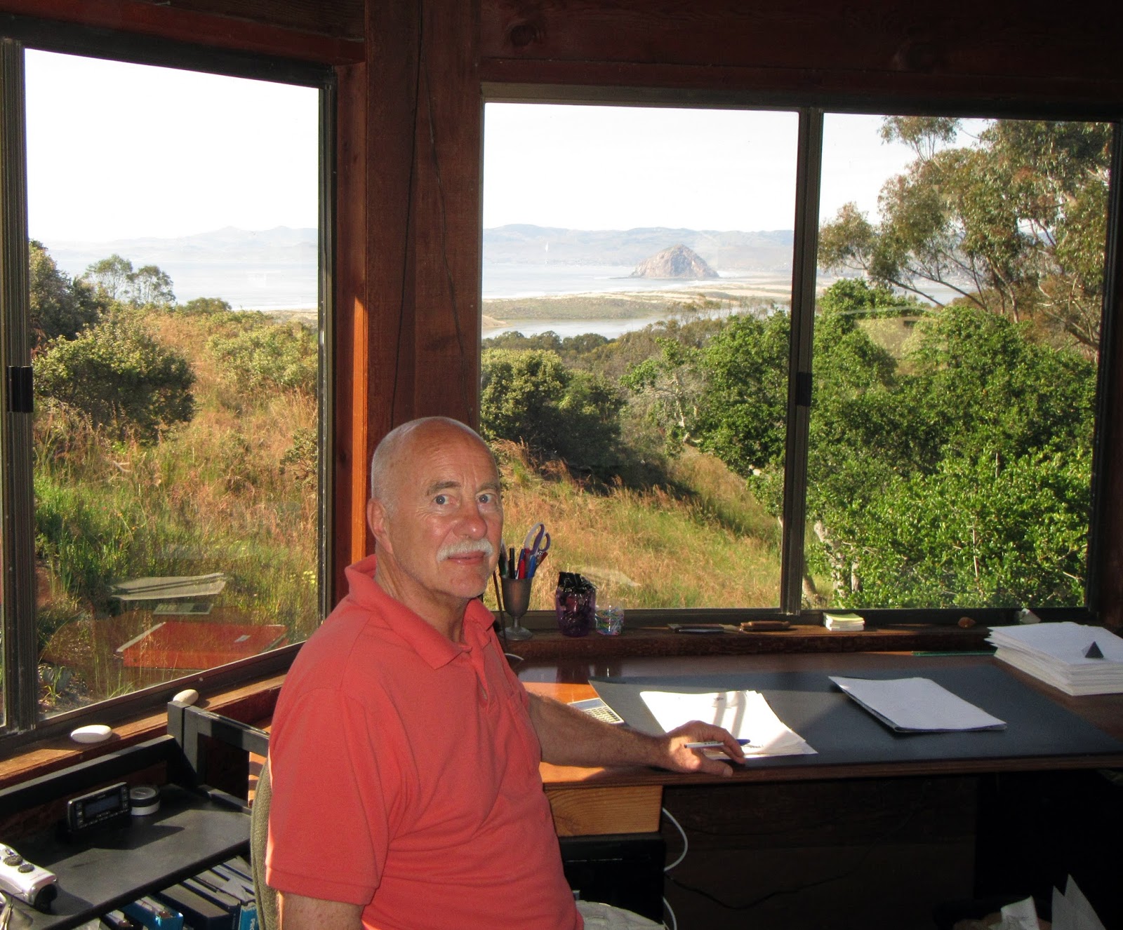 Absolutely. I have a small rustic octagonal cabin, picture windows on all sides, overlooking Morro Bay, the open Pacific, and the Santa Lucia mountain range here on California’s Central Coast. It has electricity, running cold water, and a Swedish fire pit. So I alternate splitting firewood, pipe dreaming in the rocking chair, stoking the fire, and writing true first-hand adventure stories and mathematics.