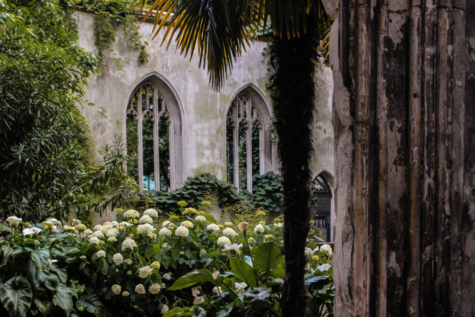 A short walk from Monument tube station, in a side street of the City of London, lies St-Dunstan-in-the-East. This abandoned church has been converted into a garden open to the public, which remains largely undiscovered despite its location. Tucked away from skyscrapers like the Shard and Walkie Talkie, this unexpected gem is a surprisingly peaceful place for reflection and escape from central London at a time when its citizens perhaps need it most…