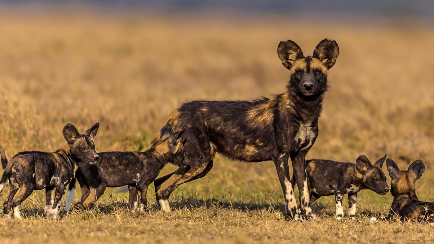 The scientific name for the African Wild dog means “painted wolf”. No two wild dogs have the same markings, which makes them easily identifiable as individuals.African wild dogs have huge home ranges and are constant wanderers. In the Serengeti the estimated size of each pack’s territory is 1,500 km2. An area the size of Greater London, which is home to 7.5 million people, could therefore only support one or two African wild dog packs.Unlike many other species, once they reach maturity it is the males that stay within their natal pack while females migrate and join new packs.Pups that are old enough to eat solid food are given priority at a kill, even over the dominant pair.The dogs have a peculiar rather playful ceremony that bonds them for a common purpose and initiates each hunt. They start circulating among the other pack members, vocalising and touching until they get excited and are ready to hunt.African wild dogs are intelligent and cooperative hunters. Some of the dogs run close to the prey while the others fall behind. They then take over when the front members tire.When feeding, they lack aggression towards each other and share the kill; even with members who may not have been involved in the actual hunt.The entire African wild dog pack shares responsibility for protecting the cubs, with both males and females babysitting the young.Although once considered a “pest”, the African wild dog has become a symbol of pride in Zimbabwe. Thanks to efforts by local communities and NGO’s, the wild population in Zimbabwe has almost doubled in recent years.