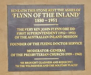 Survived by his wife, Flynn died of cancer in Sydney on 5 May 1951 and his ashes, at his request, expressed through his widow, were interred at the foot of Mt Gillen, Alice Springs. At this service his senior padre, Kingsley Partridge, said, 'Across the lonely places of the land he planted kindness, and from the hearts of those who call those places home, he gathered love'. In 1956 the John Flynn Memorial Church was opened in Alice Springs.